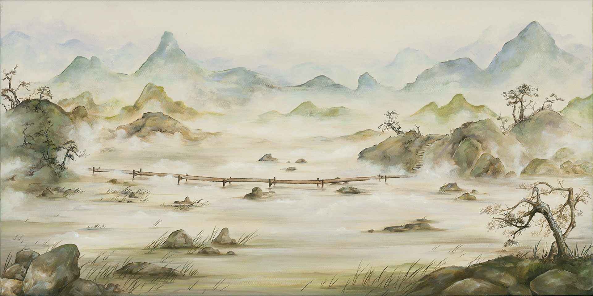 Oil and acrylic applied to various canvases, paper, and wood panels.